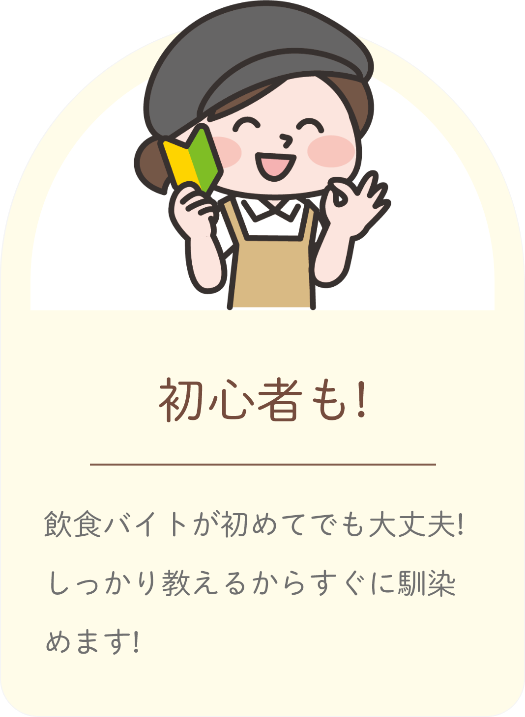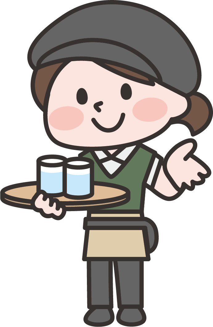 テーブルの片付けやレジでのお会計もお願いします。最初は笑顔で「いらっしゃいませ」と言えれば大丈夫。