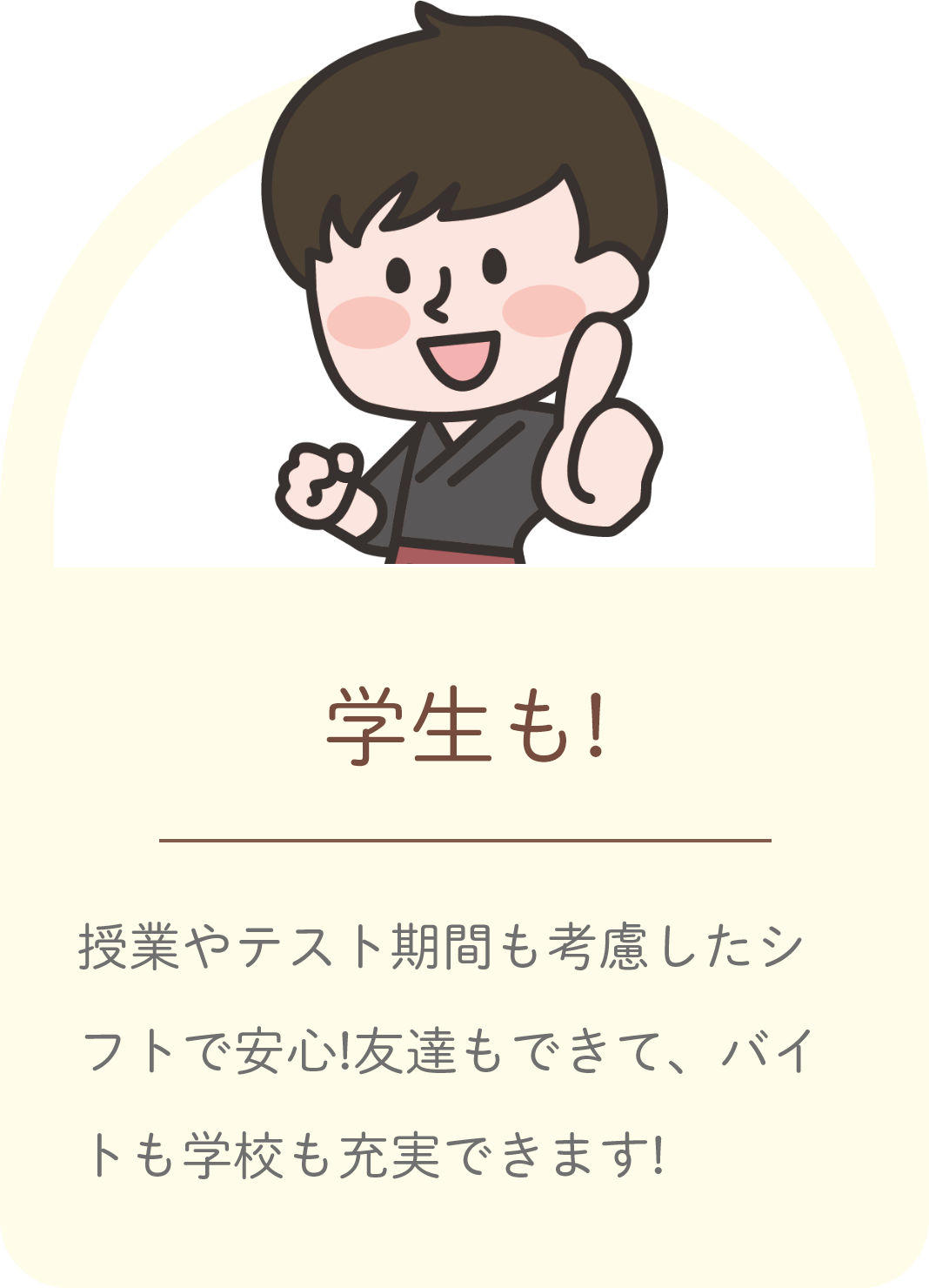 A.週1日・1日3時間程度からご相談いただけます。学業やご家庭との両立も安心です。